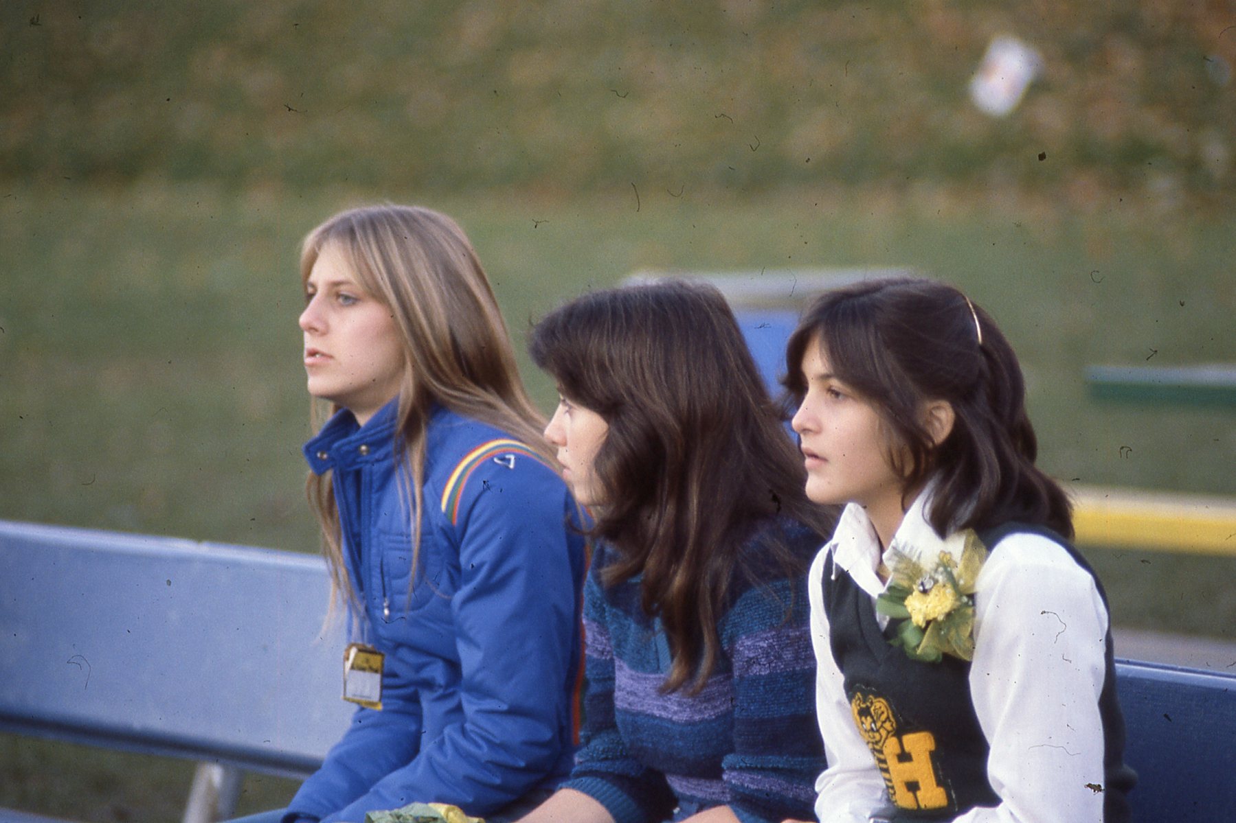 Taylor Montgomery/Gordon Solovey Football Collection. 1978-1981. Picture 112 of 296. Ellie Frankel, Cynthia Greenberg, and Gina Caruso. 1979.