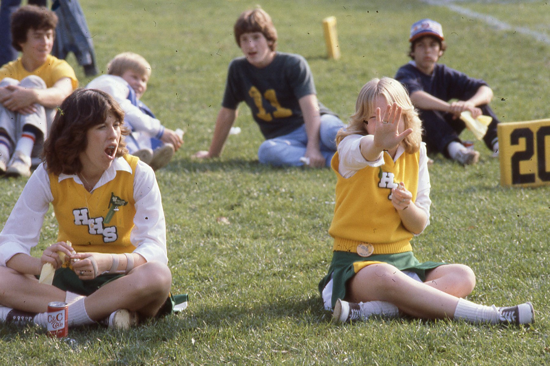 Taylor Montgomery/Gordon Solovey Football Collection. 1978-1981. Picture 70 of 296. In front: Kerry Schmidt and Carol Klipp (apparently doing her “Stop In The Name of Love” pose.) The guys in the back are James Grant, John Cavanaugh, Russ Holub, and Joe DeGennaro. Fall 1979.